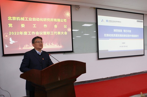 公司總經(jīng)理李金村代表領(lǐng)導(dǎo)班子以《深化改革創(chuàng)新 聚力提質(zhì)增效 奮力譜寫(xiě)“十四五”高質(zhì)量發(fā)展新篇章》為題,做了2021年度工作報(bào)告。他指出,2021年是極不尋常的一年,北自所全面貫徹落實(shí)黨中央國(guó)務(wù)院重大決策部署,堅(jiān)持戰(zhàn)略引領(lǐng),發(fā)揮黨建優(yōu)勢(shì),把穩(wěn)增長(zhǎng)、調(diào)結(jié)構(gòu)、推改革有機(jī)結(jié)合,全體干部職工攻堅(jiān)克難、銳意進(jìn)取,經(jīng)營(yíng)發(fā)展改革各項(xiàng)工作取得顯著成效,實(shí)現(xiàn)了“十四五”良好開(kāi)局。