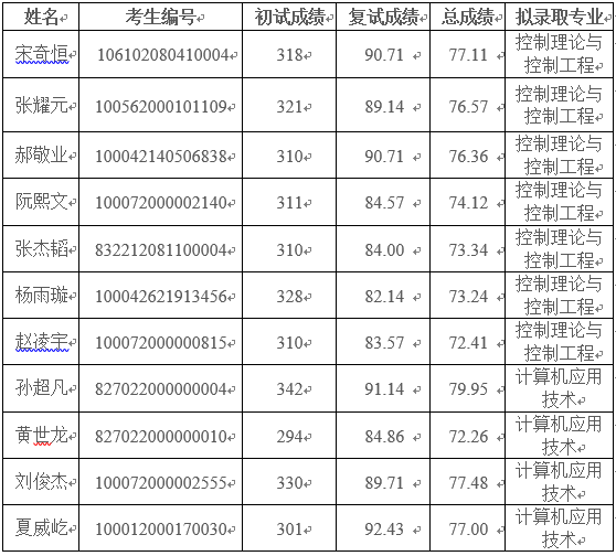 根據(jù)教育部有關(guān)文件要求和北自所碩士研究生復(fù)試、錄取辦法安排,經(jīng)過(guò)初試和復(fù)試篩選,現(xiàn)將北京機(jī)械工業(yè)自動(dòng)化研究所2022年碩士研究生擬錄取名單公示如下:
