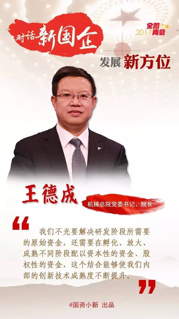 王德成說:“結(jié)合公益類央企定位和百年科技研發(fā)集團定位這兩大定位,能夠使我們更好地推動裝備制造業(yè)的轉(zhuǎn)型升級,為裝備制造業(yè)的發(fā)展提供持續(xù)動力,這既是國家政策的體現(xiàn),也是我們職責(zé)使命的必須?!?nbsp;