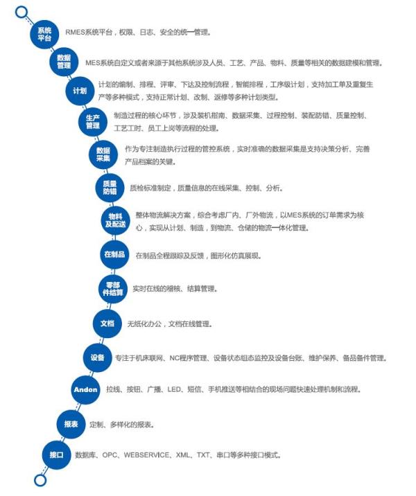 RMES 3.0系統(tǒng)是北自所針對制造行業(yè)專門設(shè)計(jì)研發(fā)的MES系統(tǒng)平臺,具有自主知識產(chǎn)權(quán),是在原有MES 1.0和2.0的基礎(chǔ)上,在工藝流程可配置、移動應(yīng)用等方面進(jìn)行了全面提升。RMES 3.0包含生產(chǎn)建模、計(jì)劃、制造過程、質(zhì)量、倉儲物流、ANDON等管理模塊,并結(jié)合智能移動應(yīng)用、大數(shù)據(jù)處理、智能報(bào)表平臺等先進(jìn)技術(shù),實(shí)現(xiàn)了發(fā)動機(jī)裝配制造過程的數(shù)字化管控,從訂單下達(dá)到產(chǎn)品完成的整個(gè)生產(chǎn)過程進(jìn)行優(yōu)化管理,對工廠事件及時(shí)作出響應(yīng)、報(bào)告、跟蹤及處理。該系統(tǒng)在組織管理企業(yè)制造流程、優(yōu)化工藝流程和倉儲物流、切實(shí)提高制造和管理效率、降低生產(chǎn)成本等方面發(fā)揮了明顯的作用,是精益生產(chǎn)、精益物流等管理思想在企業(yè)的良好載體和實(shí)踐平臺,是企業(yè)踐行兩化融合、推進(jìn)智能制造的核心方案。目前RMES 3.0已成功應(yīng)用于國內(nèi)眾多企業(yè)。