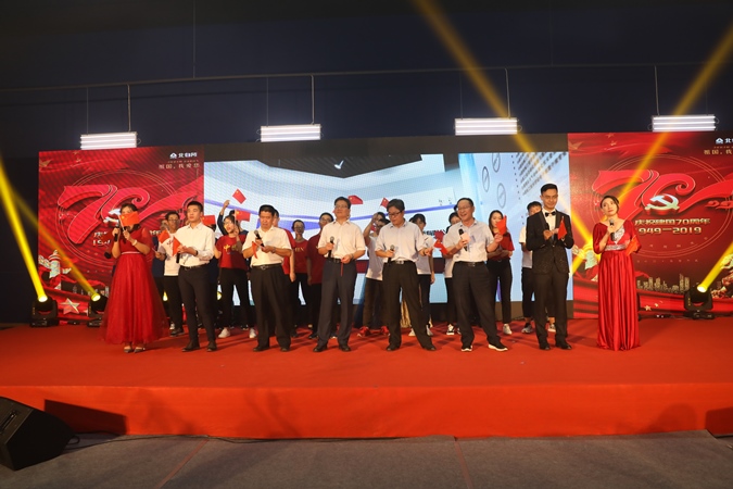文藝匯演由來自公司辦公室的劉京、液壓事業(yè)部的王卿、電物理事業(yè)部的王致慧、北自科技的吳睿婧主持。本次文藝匯演以慶祝中華人民共和國(guó)成立70周年為主旋律,通過合唱、歌曲串燒、詩朗誦、京劇、薩克斯、古箏、太極功夫扇等多種藝術(shù)形式為祖國(guó)獻(xiàn)禮。一曲液壓事業(yè)部帶來的《我愛你中國(guó)》將活動(dòng)緩緩拉開序幕,優(yōu)美的曲調(diào)叩人心弦,濃濃中華情涌上心頭;專用電路事業(yè)部詩朗誦《書生意氣斥方遒》字字珠璣,展示出青年職工砥礪報(bào)國(guó)之志;北自科技京劇演唱《穆桂英掛帥》、薩克斯獨(dú)奏吹響《歌唱祖國(guó)》,傳統(tǒng)戲曲和木管音樂伴隨著特制視頻帶來一場(chǎng)視聽盛宴;生產(chǎn)力中心的詩朗誦《中華誦》、《天耀中華》情感真摯,將拳拳愛國(guó)心展現(xiàn)的淋漓盡致;職能部門以《中國(guó)功夫》為背景音樂打出一套太極功夫扇,弘揚(yáng)了中國(guó)傳統(tǒng)文化;電物理事業(yè)部合唱一曲《相親相愛》飽含深情,起伏環(huán)繞連綿不絕;北自科技黃學(xué)琴、專用電路中心解衍新受邀為青年職工獻(xiàn)上青春寄語,當(dāng)屏幕上映出46位30年前入職的老職工年輕的照片時(shí),現(xiàn)場(chǎng)職工熱淚盈眶,掌聲四起,感慨萬千。