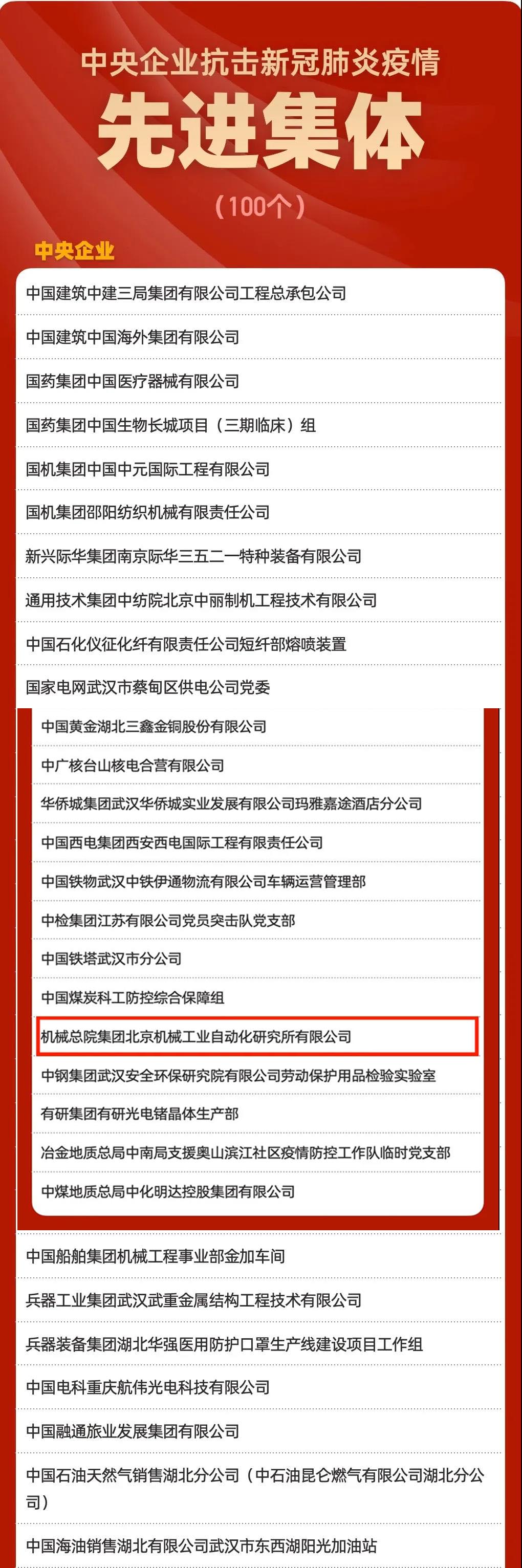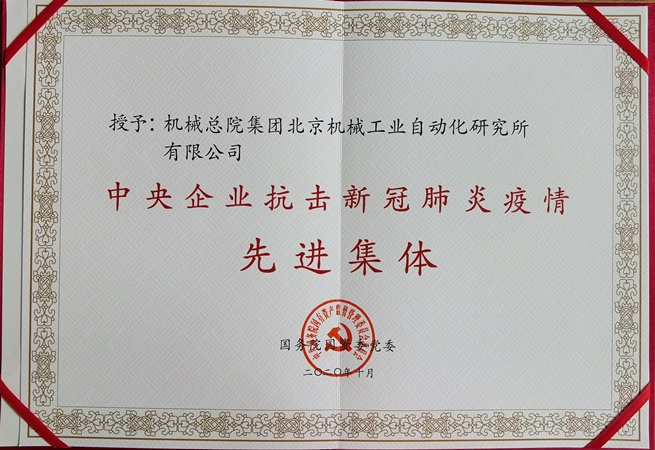 北京機(jī)械工業(yè)自動化研究所有限公司(以下簡稱北自所)因在抗擊新冠肺炎疫情中的突出表現(xiàn)榮獲“中央企業(yè)抗擊新冠肺炎疫情先進(jìn)集體”稱號。