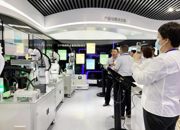 隨后,學(xué)習(xí)小組參觀了北自所智能制造實(shí)驗(yàn)室。實(shí)驗(yàn)室是基于智能制造整體解決方案打造而成,將設(shè)備、自動(dòng)化產(chǎn)線、智能物流倉儲(chǔ)系統(tǒng)、生產(chǎn)指揮系統(tǒng)、工業(yè)管理軟件等智能制造的關(guān)鍵環(huán)節(jié)進(jìn)行精準(zhǔn)還原和完整呈現(xiàn)。在參觀了智能制造實(shí)驗(yàn)室之后,學(xué)習(xí)小組對(duì)智能制造過程有了更直觀、真切的感受。