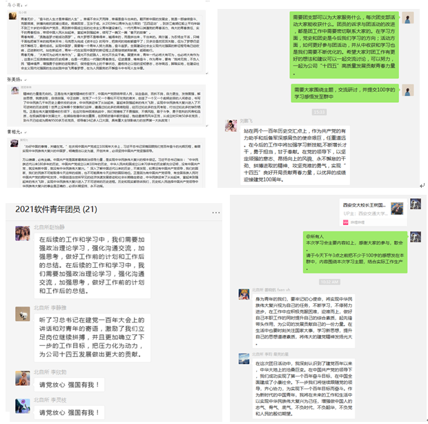 廣大團員紛紛表示,通過學習領會習近平總書記“七一”講話精神,深刻認識到正是在黨的領導下,我們國家和民族才取得了一系列偉大成就,表明將始終堅持和擁護黨的領導;充分理解黨百年來帶領人民獲得民族獨立、謀求民族復興道路的不易,表示將牢記歷史,珍惜當下的幸福生活。同時,團員青年結合自身工作實際,從業(yè)務或管理角度,對自身如何北自所“十四五”高質量發(fā)展貢獻青春力量進行了交流研討,大家指出,作為新時代青年,要努力為實現中華民族偉大復興貢獻力量,堅定信念目標、矢志艱苦奮斗,在工作崗位上踏實奉獻、鍛煉自我,在公司“十四五”發(fā)展的重要機遇期把握機會、努力提升、爭創(chuàng)佳績。