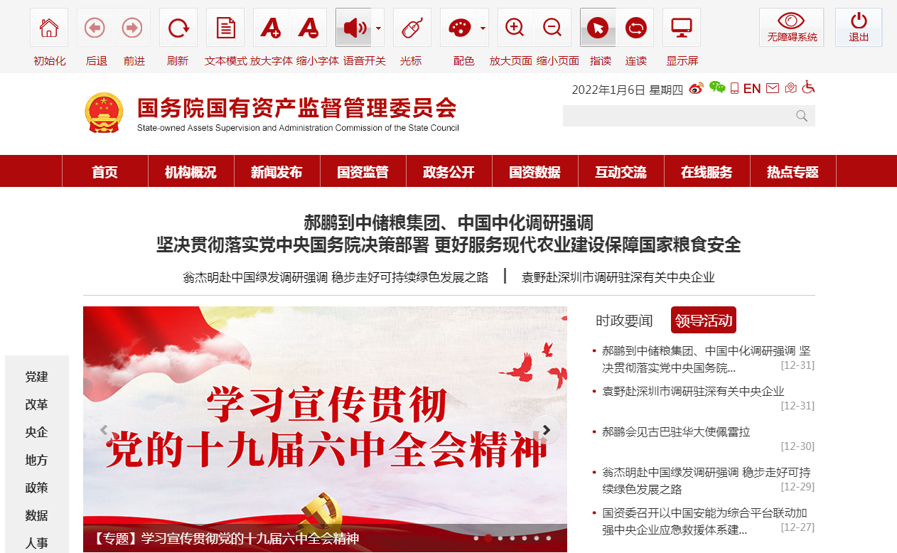經(jīng)過(guò)精心準(zhǔn)備、反復(fù)測(cè)試,國(guó)資委網(wǎng)站適老化與無(wú)障礙改造相關(guān)功能于2021年12月31日正式上線運(yùn)行。