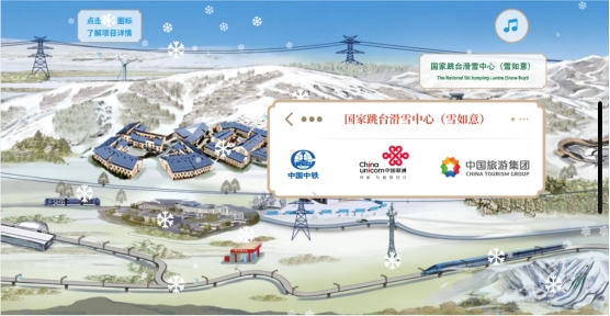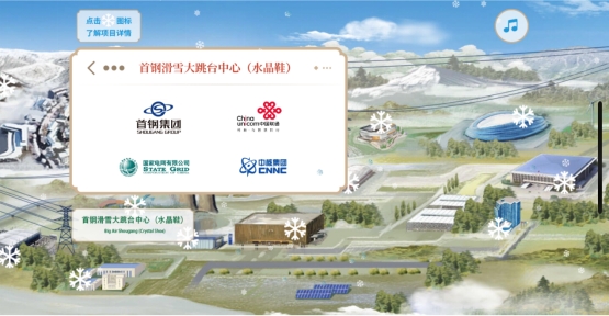 向左滑動(dòng)來到首鋼園附近,由首鋼集團(tuán)建設(shè)的首鋼滑雪大跳臺(tái)(水晶鞋)與首鋼冷卻塔交相輝映,這里將承擔(dān)單板和自由式滑雪大跳臺(tái)比賽項(xiàng)目,其設(shè)計(jì)理念源自中國敦煌壁畫中傳統(tǒng)的飛天造型,從側(cè)面看去猶如一只靈動(dòng)的“水晶鞋”。首鋼園作為冬奧組委所在地,由中核集團(tuán)、國家電網(wǎng)、中國聯(lián)通等提供的技術(shù)服務(wù),是奧運(yùn)籌備和指揮神經(jīng)中樞的重要保障。
