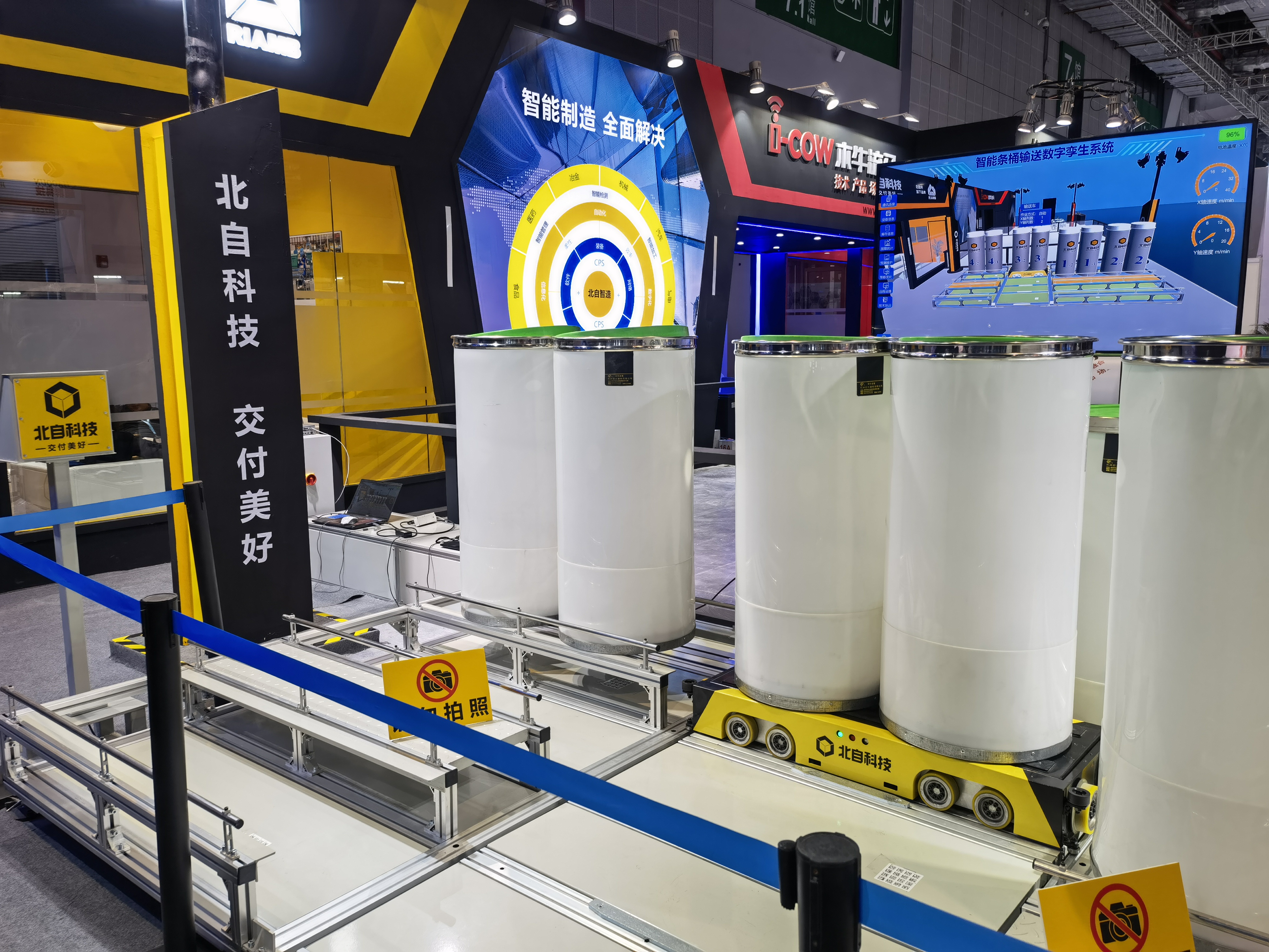 面對(duì)“5G、數(shù)據(jù)中心、人工智能”等新基建,需要關(guān)聯(lián)更多的數(shù)字化理念,制造裝備企業(yè)實(shí)現(xiàn)數(shù)字化才能將“工業(yè)4.0、云計(jì)算”真正實(shí)現(xiàn)。本次展會(huì)上,北自所(北京)科技發(fā)展有限公司(簡(jiǎn)稱北自科技)推出基于數(shù)字孿生技術(shù)研發(fā)的棉紡條筒智能物流系統(tǒng)和其他智能裝備及解決方案,受到現(xiàn)場(chǎng)觀眾的廣泛關(guān)注。